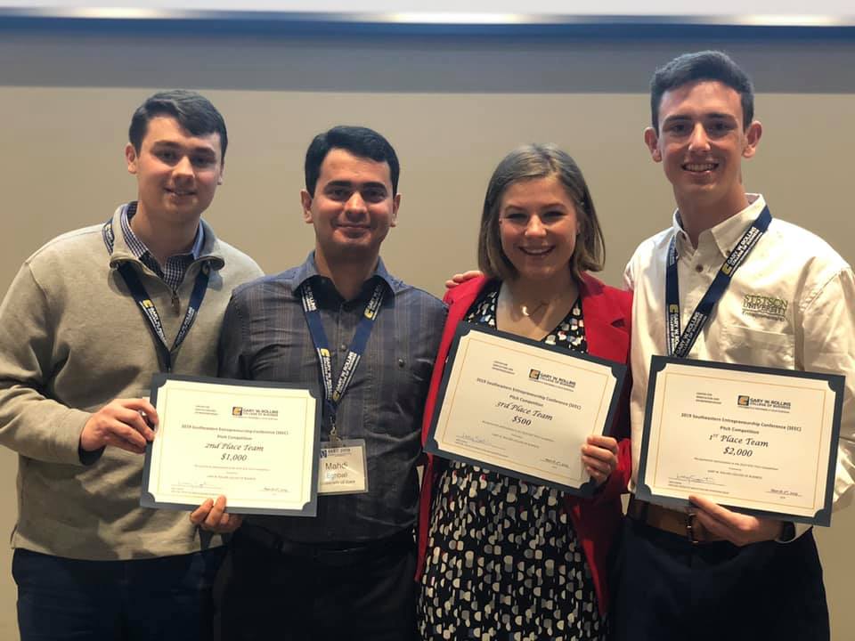 A whopping 36 students participated in the pitch competition and presented their new venture ideas in 90 seconds. Contestants were coached and critiqued by local entrepreneurship professionals. The winners of the 2019 SEEC Pitch Competition are as follows:
