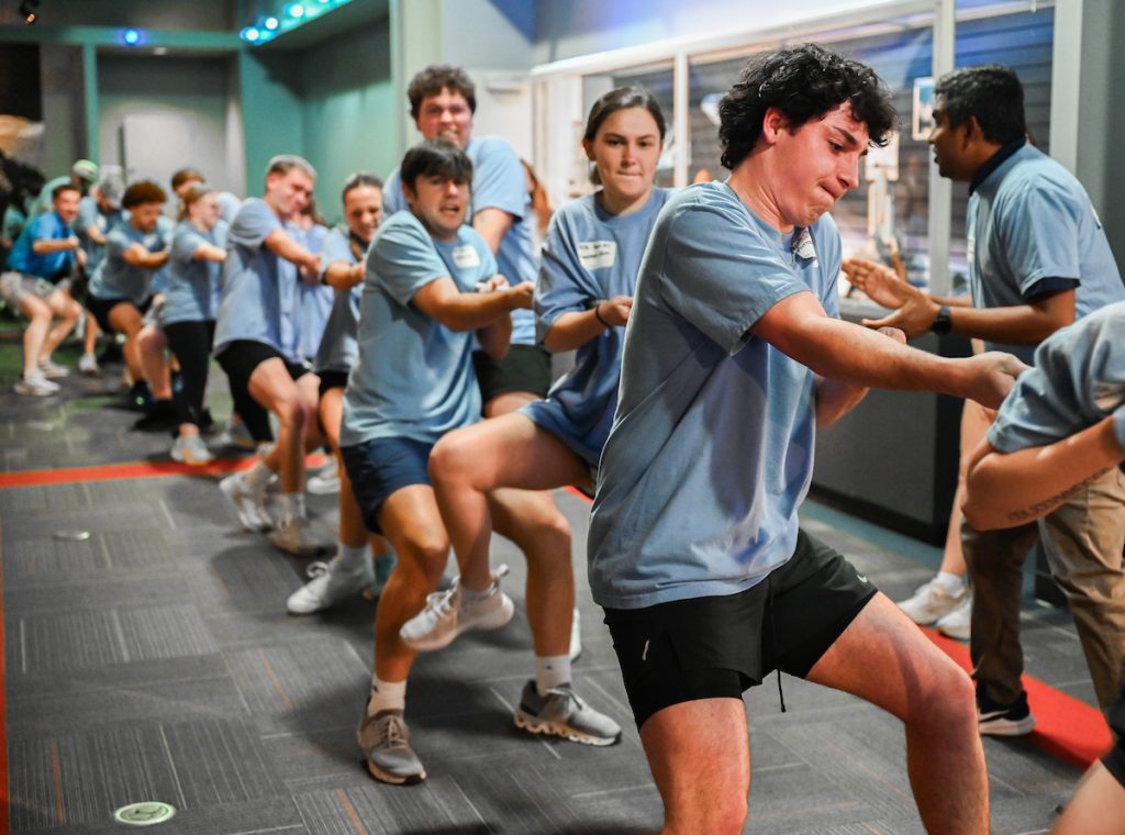The rainy weather may have driven the battle between the Gary W. Rollins College of Business and College of Engineering and Computer Science indoors, but it didn’t dampen the competitive spirit during the third annual Field Day Games.