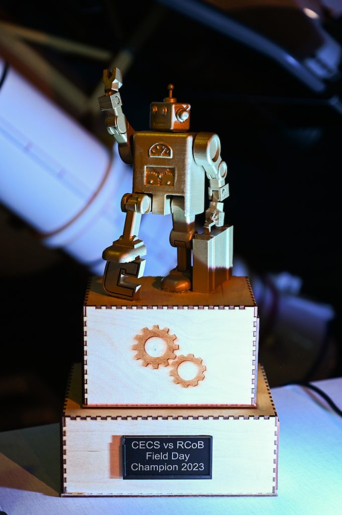 The lighthearted event began three years ago as a way to bring the RCOB and CECS residential colleges together but has expanded to include other student groups as well as faculty and staff from each college. Coming back from a crushing defeat last year, the Rollins College of Business beat the College of Engineering and Computer Science by a mere ten points, bringing home the victory and sending the Loser’s Trophy back to CECS.