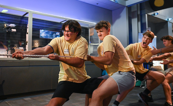 The event, moved from Chamberlain Field to the UTC Challenger Center, featured a variety of contests from hula hoop races, cornhole, and Connect4. This year, the competition was expanded to include a dance off and culminated in the final tug-of-war battle between the two colleges.