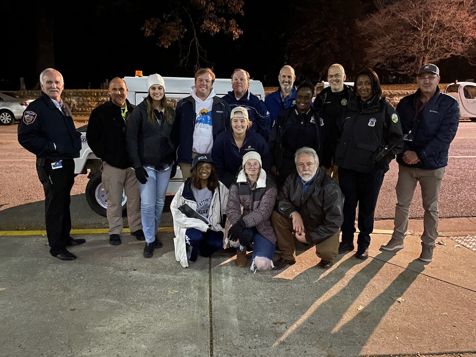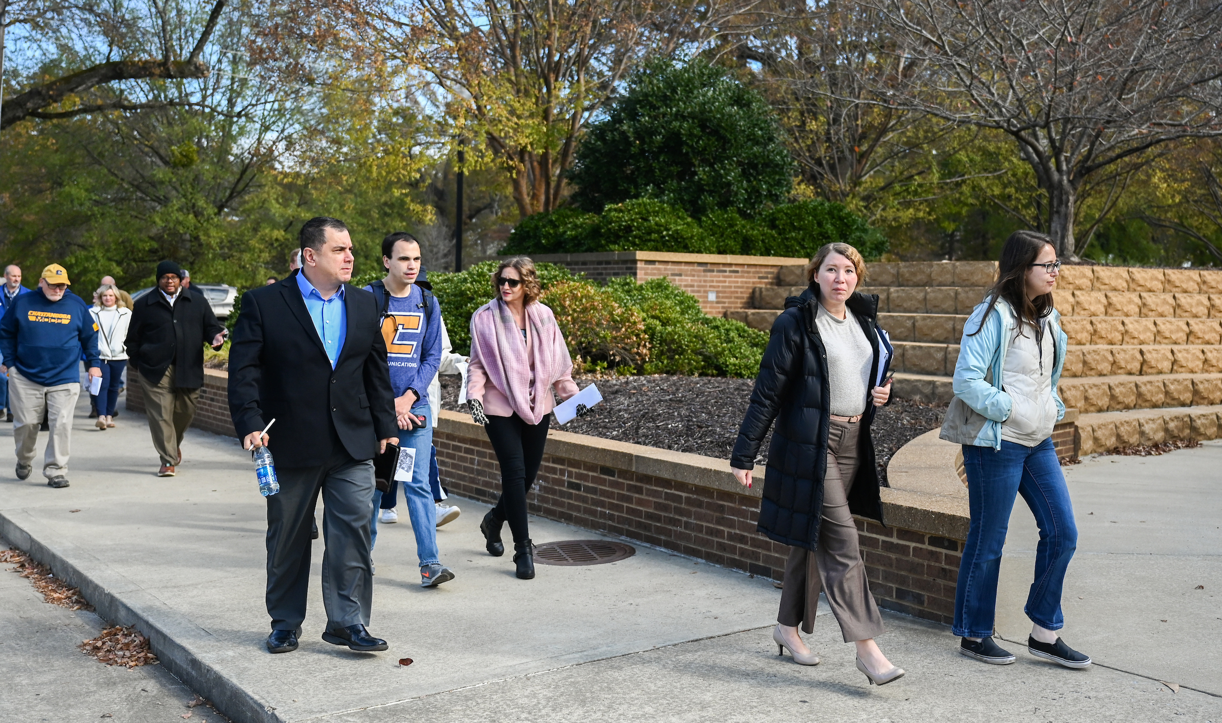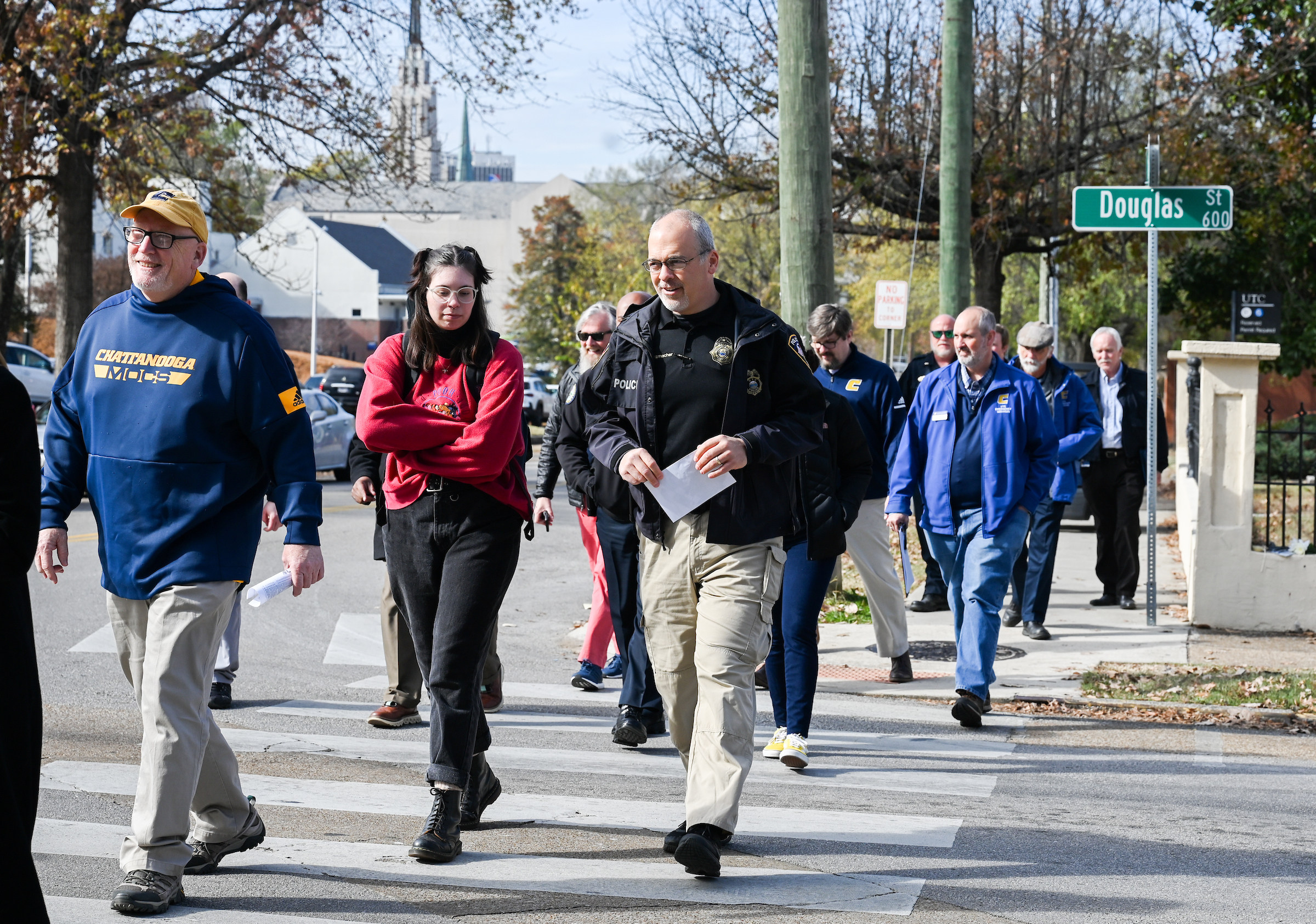 Over the more than 10-year history of SGA Safety Walk events at UTC, Tuesday’s midday outing was among the largest groups ever to participate. University administrators made up about two-thirds of the turnout.