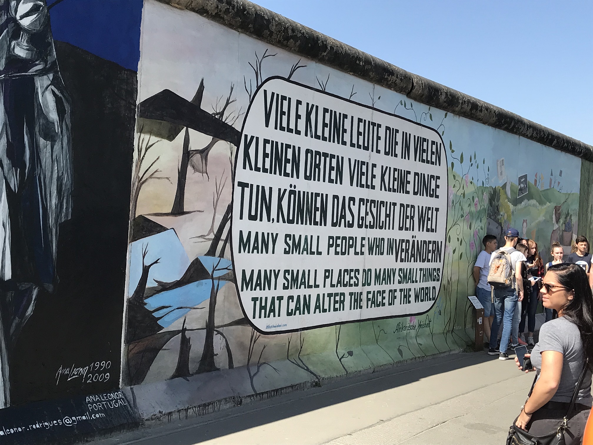 During our first week in Berlin, we toured the city in a wonderfully air conditioned, stylish van. The tour guide complained about the tinted windows, but I loved it -we visited both East and West Berlin. The tour guide was this personable, funny, and opinionated West Berliner by way of Austria and our driver was the quiet, obliging, and patient Russian. Our trip was both informative and entertaining. I particularly liked the way she said, “Ya” after asking questions. I learned a lot about Berlin as it is now redefining itself after WWII and the downfall of the Berlin Wall. I learned about architecture, politics, and the social atmosphere. It was quite interesting.