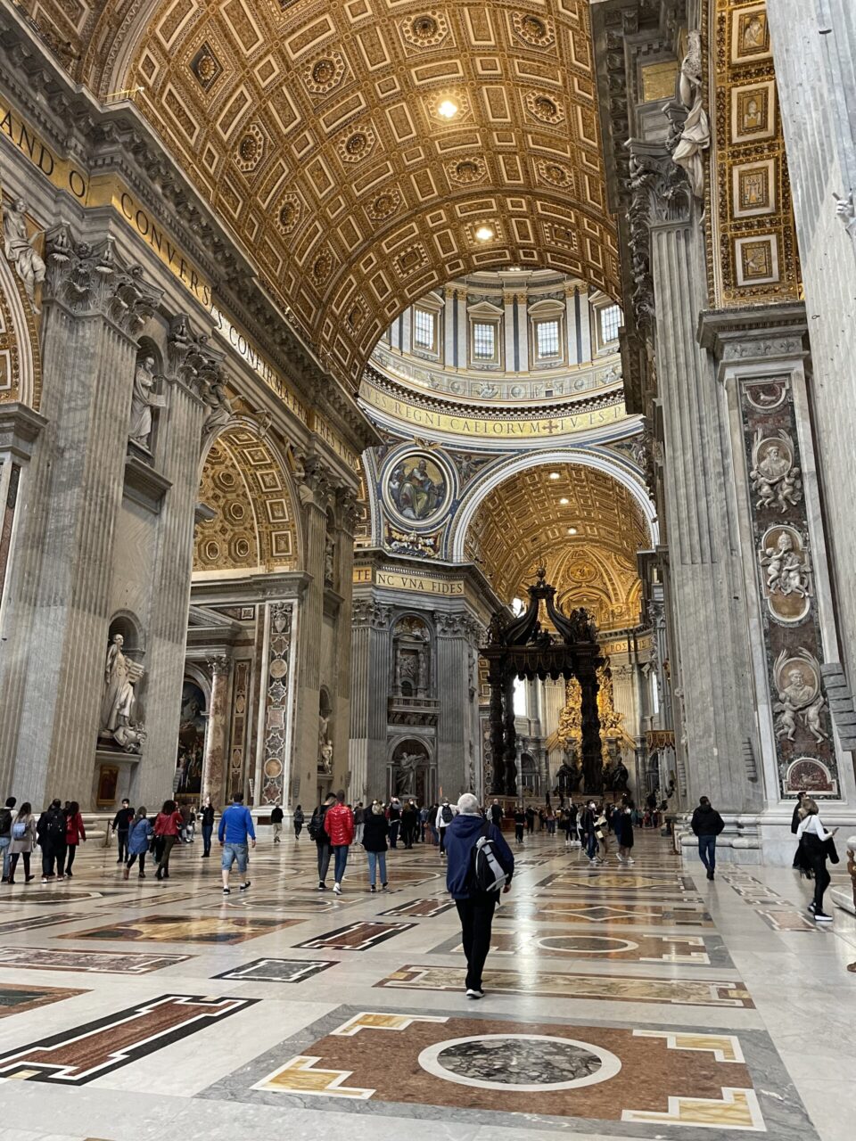 My all time favorite thing I did was visit St. Peter’s Basilica. We visited halfway through the trip and I was left in awe. The entire church is made up of mosaics, colored glass, that make it feel grander than any palace. The history and artifacts inside the basilica are all things I had learned growing up in the church. On our free day, me and some friends decided to revisit St. Peters and we accidentally ended up seeing Pope Francis too! We listened to him give his Sunday blessing. We then walked all the way to the top of the dome and saw the entire city of Rome. There is a law that no other building can be built as tall or taller than St. Peters, so we were really looking down to all of Rome. After the dome, we went back downstairs and we got to experience them opening the church doors for Sunday mass. It was moving to see the herd of people entering the church singing their praises as they followed the priest inside. It was an