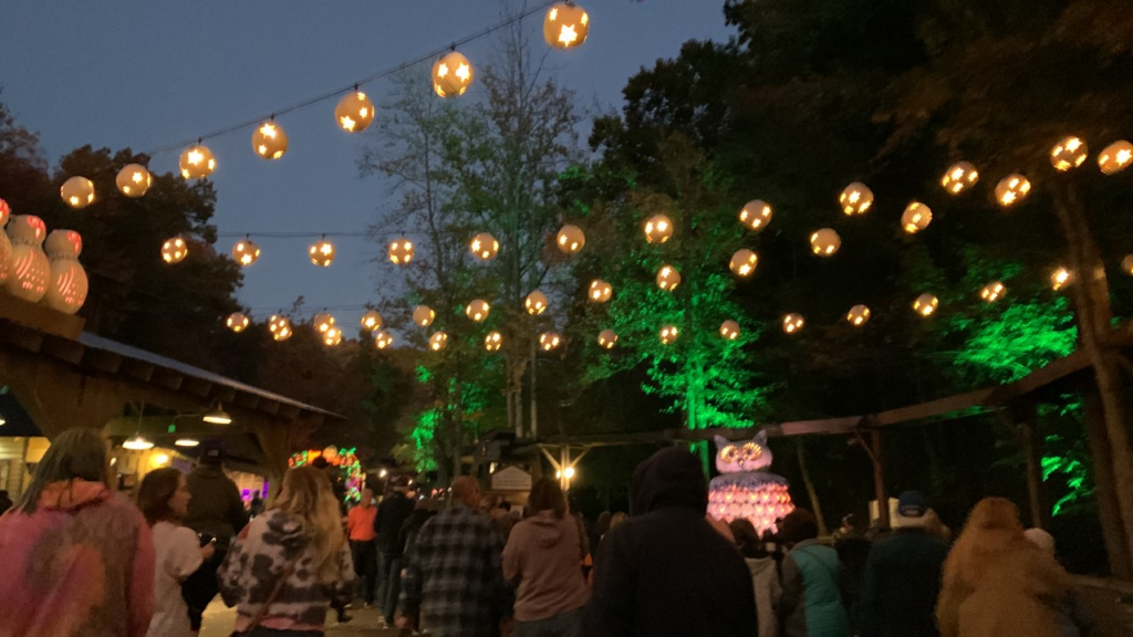 I went to Gatlinburg during fall break. First, I looked at the cave. I took on the boat and moved on in the cave while watching fishes. I rarely go to the cave so the experience has become special for me. After that, I walked around downtown. On that day, there are many Halloween decorations around. I enjoyed the atmosphere of the town. Next day, I took on the rope lift and went to the high place in the mountain. The view from the mountain was so beautiful. I took many pictures with friends. The leaves were changing colors so I felt the start of autumn. I ate American local foods at the restaurant there. The taste was good and I ate a lot. At night, I went to Dollywood, which is an amusement park. I spent a short time there but I could ride roller coasters. I looked at the illuminations and they were very pretty.