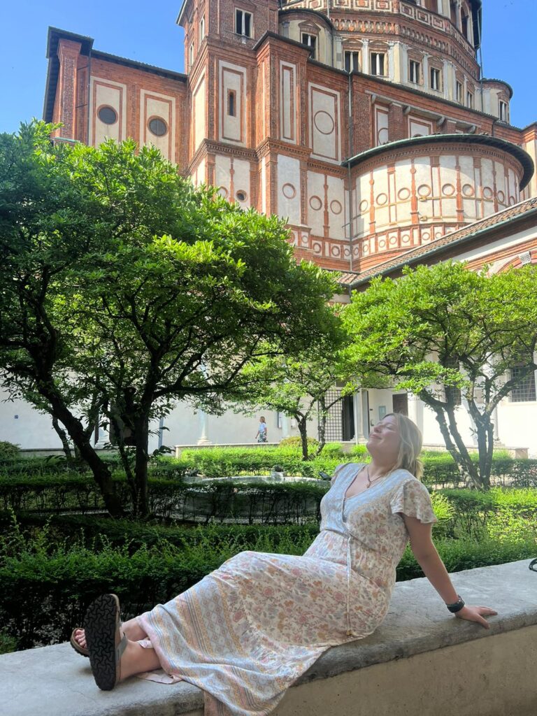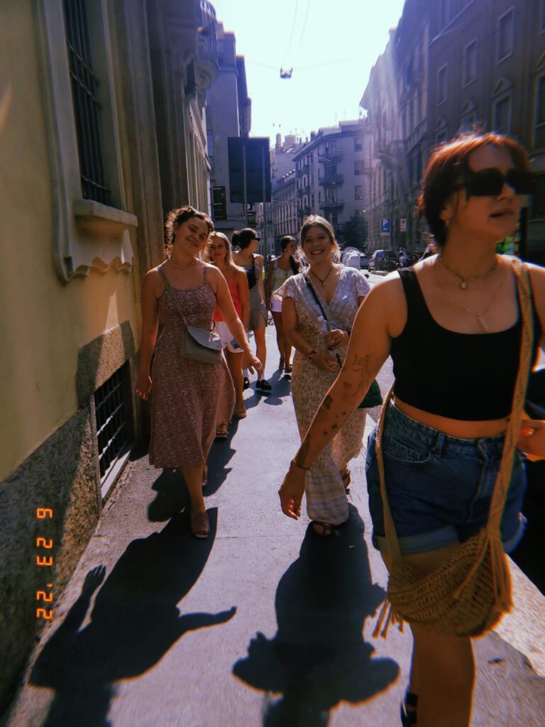 The people I met in Italy definitely had a large impact on how amazing my trip was. This trip was my first time being on a plane or being in another country since I was 10 which was nerve wracking at first. But having other people that I knew with me made a big difference in helping us all to adjust. Milan is a very fashionable city, with stores at every corner you turn. There are streets lined with old and new architecture with varying styles making a home right next to each other. There were many design trends that I saw over there that I brought back home with me. I felt so much acceptance in Milan, with certain streets and restaurants being dedicated to LGBTQ+ for example. A lot of the people we met were genuine and open minded people which made making connections a lot easier. The food was delicious, with a lot of the restaurants we visited even growing their own fruits and vegetables at the restaurant. Everything tastes so fresh and it was very refreshing to be able to just walk everywhere. Walking and biking are common over there so not having to worry about driving was nice. For anyone thinking about studying abroad in Milan, I would highly suggest visiting the Duomo, Churchill Caffe, Ristorante de Oscars, and to do some shopping of course.