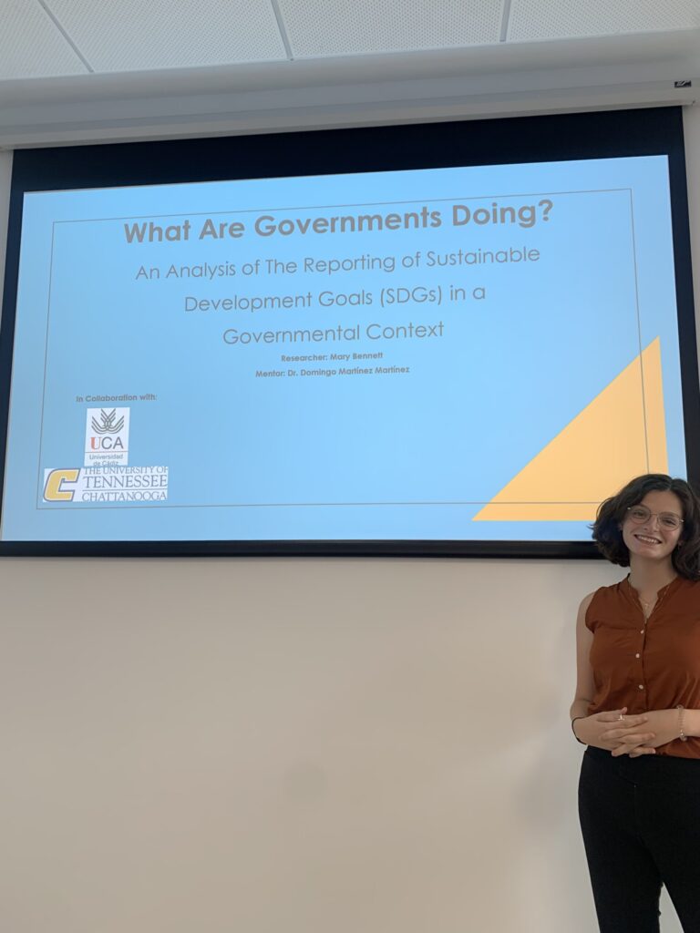Mary Bennett (BS Finance) participated in the Summer 2022 international summer learning opportunity for students offered through the Office of Undergraduate Research and Creative Endeavors. The International Summer Undergraduate Research Program represents a collaboration between The University of Tennessee at Chattanooga and the University of Cadiz in Spain. The purpose of the initiative is to support students to participate in an eight (8) week intensive research experience during the summer in a global environment. Mary had the following to say about studying abroad, “If you are openminded and willing to be uncomfortable–traveling abroad will change your life. If it doesn’t, you did something wrong.”