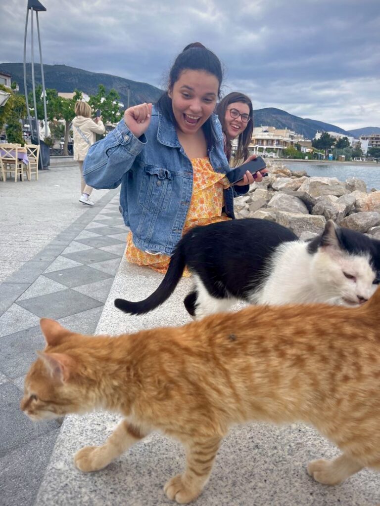 This was a short experience, but I loved it. The views were amazing, and the calmness of the city was entirely different compared to Athens. The lunch was amazing and being on the water made the experience even better. This is where I met my two stray cat friends. I named them Frannie (orange cat) and Charles (black cat). The last thing I remember from this city would be the olive trees, which the back of the bus called “Children of the Olives” trees. This is a very beautiful place to visit, and I enjoyed it better than Athens I would say.