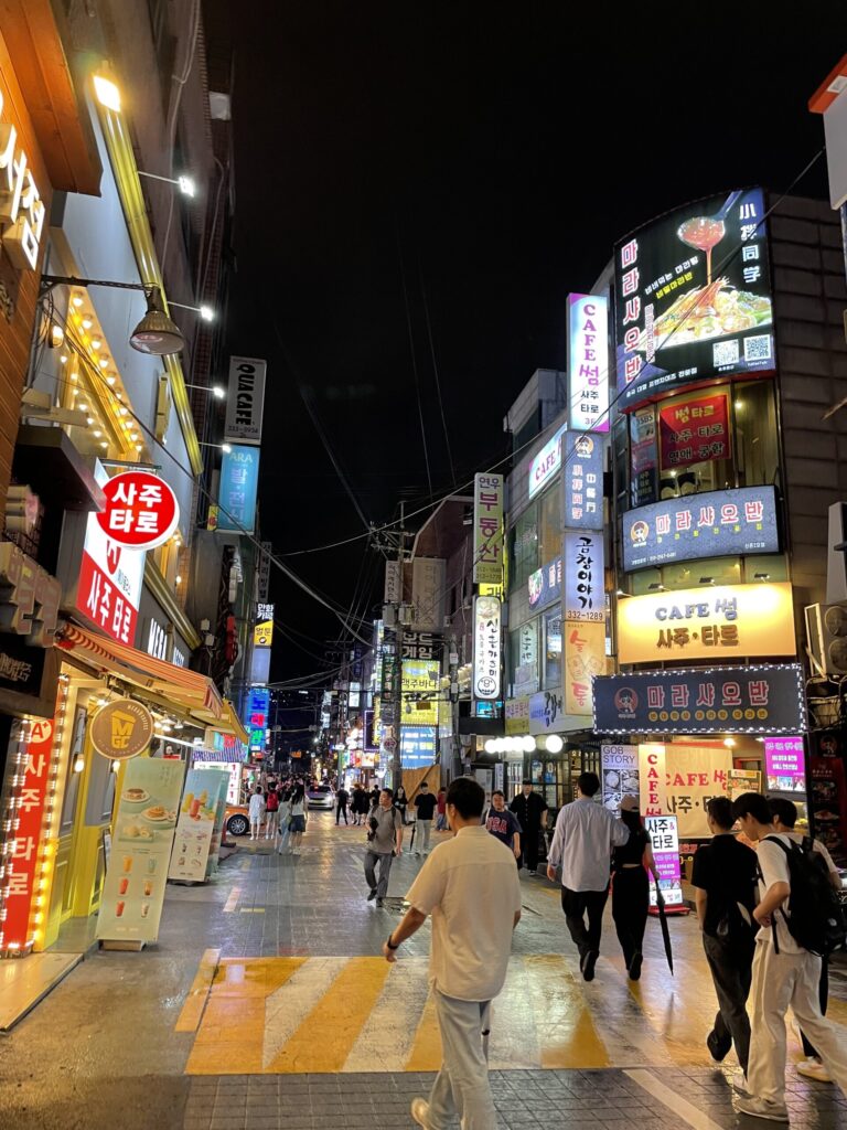 Studying abroad in Seoul, South Korea was an amazing opportunity that I don’t think that I will ever have again. I studied for 6 weeks, and chose my program because of that length abroad: not too short, but not a full summer either. While I was explicitly in Seoul for academics (definitely take a Korean cinema course if you need to take an Arts-related class), the experience of living among a different culture and learning how they live was undoubtedly more valuable. Overall, daily life is daily life. Koreans work, study, eat, shop, and more just like Americans, but seeing the little differences in how everything is done makes you realize that the methods and systems you grew up with are not a default, and probably not even the best way to do things.