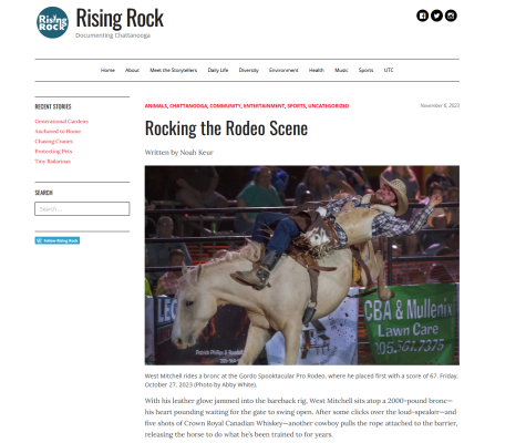 COMM student Abby White recently placed 15th in the 2023-2024 Hearst Journalism Awards for Photo II Picture Story/Series. White’s story, “Rocking the Rodeo Scene” was one of over 100 entries from 70 universities from around the nation.