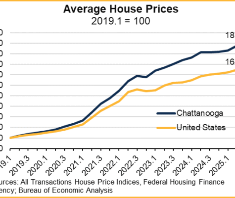 The CRER produces quarterly forecasts of the growth of nonfarm payroll employment in the Chattanooga MSA. Forecasts depend on the consensus forecast of the U.S. economy from the Blue Chip Economic Indicator survey. Our new forecast is a net gain of twelve hundred jobs in the third quarter, and for growth to rise throughout 2026.…