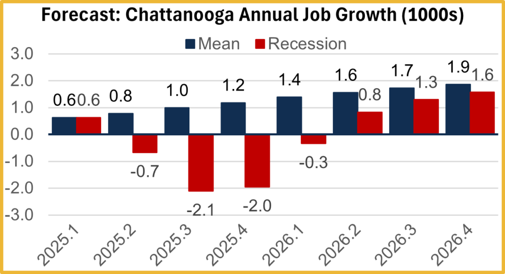 The CRER has released its Spring 2025 forecast of employment growth in the Chattanooga Metropolitan Statistical Area for 2025 and 2026.