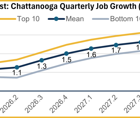 The CRER produces quarterly forecasts of payroll employment growth for the six-county Chattanooga metro area. The latest forecast indicates net job gains of about 5,000 during 2026, which would be a big improvement over 2025. Even so, that would make the year a weak one relative to recent history. Job growth should return to normal…