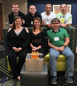 Team leader Dr. Charles Margraves with the 2017 Rube Goldberg Team. An interdisciplinary design team consisting of senior mechanical, electrical, and computer engineering students; Andrea Borges, Jacob Boyd, Autumn McCarroll, Mitchell Schroll, Scott Simmons, and Cory Smith; mentored by Assistant Professor of Mechanical Engineering Dr. Charles “Chuck” Margraves took second place in the online division of the national Rube Goldberg Competition. This annual engineering competition requires machine design focused on a particular problem with unique features and steps. The 2017 UTC machine was based on the iconic Looney-Tunes© universe, complete with each team member’s adoption of a Looney Tunes persona! The main focus was to successfully apply a “band-aid” to a mountain set amidst a peaceful ski resort and forest. The band-aid application was prompted by the reality that the mountain is in fact a volcano prompting resort residents to launch into action prevent the destruction of their village. Link to the team page which has photos and videos of the machine: www.rubegoldberg.com/teams/mocs-chattanooga-2017/
