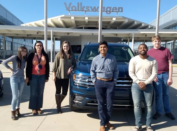 In recent weeks, two different CECS student groups have visited the VW facility to take the 90 minute tour of the robotics labs and line production areas. Organized by Associate Professor of Engineering Technology Management Dr. Aldo McLean and Junior Chemical Engineering major Reed Boeger, the CECS students touring the plant learned about innovations in VW’s manufacture of the Atlas model SUV and Passat sedan.