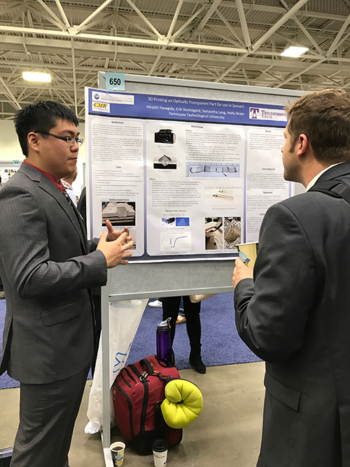 At the national meeting, Mechanical Engineering Honors Student Hiroshi “Chantz” Yanagida placed third in the Materials Science Division of the AIChE poster contest with the presentation of his research conducted in the summer of 2017 as part of a National Science Foundation Research Experience for Undergraduates in partnership with Tennessee Tech University. “Chantz’s” research project was “3D Printing an Optically Transparent Part for use in Sensors.” Also presenting a poster in Minneapolis was UTC Chemical Engineering student Olivia George, whose project focused on her research project entitled, “Targeting and Killing Melanoma Cancer Using Photoactivated Nanoparticles.”