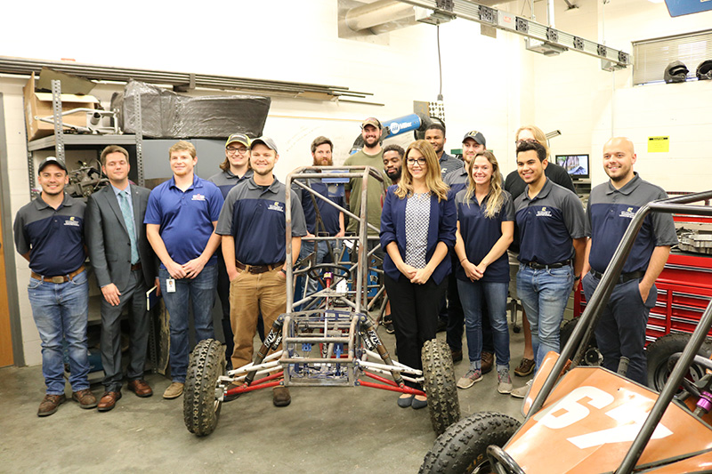 The Mini Baja Team discussed its engineering design project and the type of competitions the team enters: Baja SAE® competitions that simulate real-world engineering design projects. Participating students design and build an off-road vehicle to survive the severe punishment of a competition course designed by Baja alumni of universities across the country and professional engineers from the automotive industry. The objective of the competition is to provide students with a challenging project that involves design, planning and manufacturing tasks of introducing a new product to the consumer industrial market.
