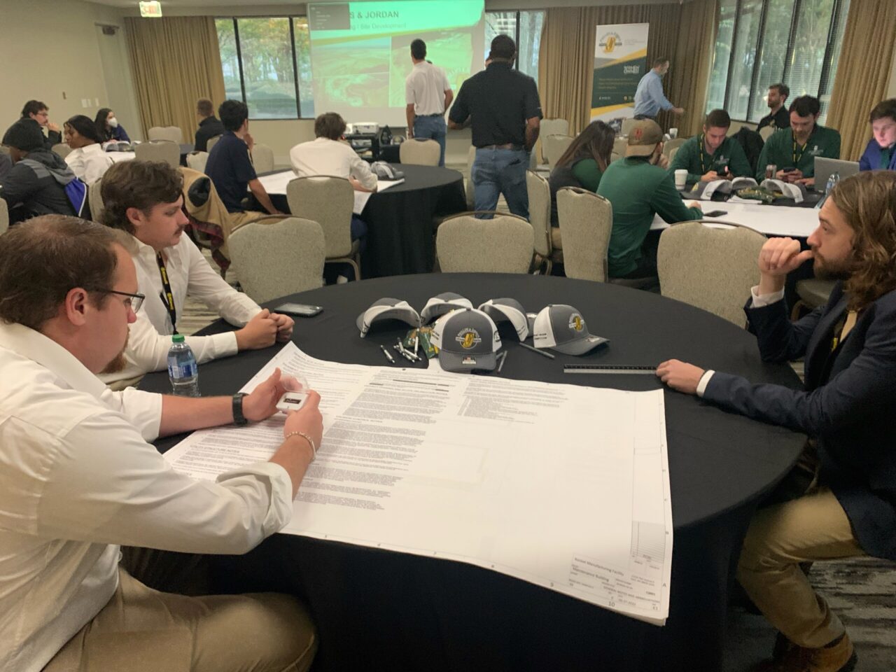 The first workday of the competition was from 7:00 A.M. to 7:00 P.M. receiving plans and specifications virtually. The Commercial Building team had to put together an estimate, project schedule, safety plan, logistics plan without any outside help. The UTC Construction Competition Team traveled to Peachtree City, GA to attend a Career Fir at the conference center. Each student submitted their resumes to construction company representing 10 major construction companies in the southeast region. Three of the major construction companies said they always look for the ” Mocs Power C” on their team shirts because they always interview well and have great resumes.