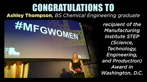 Scholarships and Awards 2016 Chemical Engineering Alumna Ashley Thompson was named recipient of the National Manufacturing …