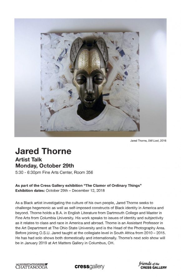 As a Black artist investigating the culture of his own people, Jared Thorne seeks to challenge hegemonic as well as self-imposed constructs of Black identity in America and beyond. Thorne holds a B.A. in English Literature from Dartmouth College and Master in Fine Arts from Columbia University. His work speaks to issues of identity and subjectivity as it relates to class and race in America and abroad. Thorne is an Assistant Professor in the Art Department at The Ohio State University and is the Head of the Photography Area. Before joining O.S.U. Jared taught at the collegiate level in South Africa from 2010 – 2015. He has had solo shows both domestically and internationally. Thorne’s next solo show will be in January 2019 at Art Matters Gallery in Columbus, OH.