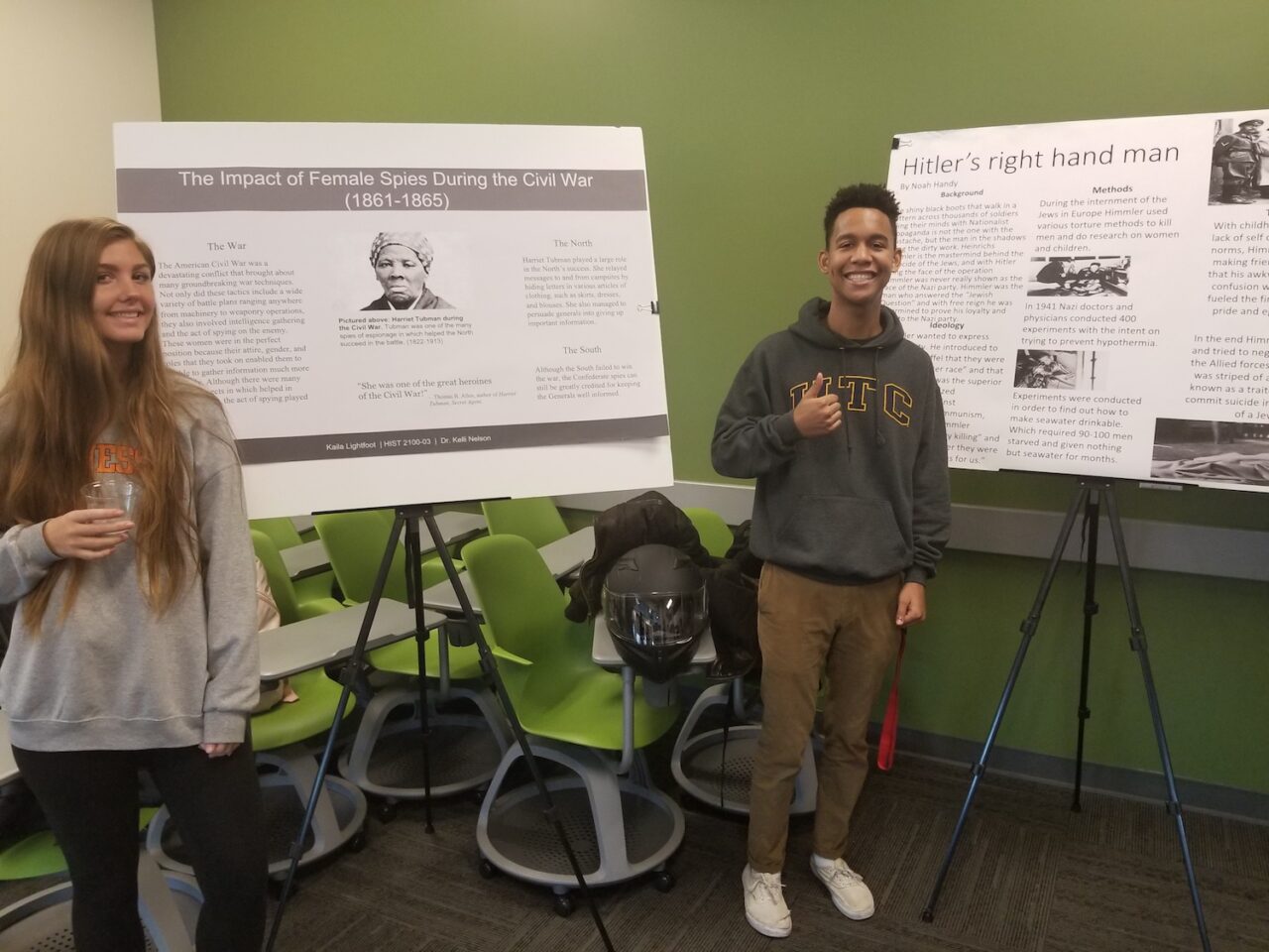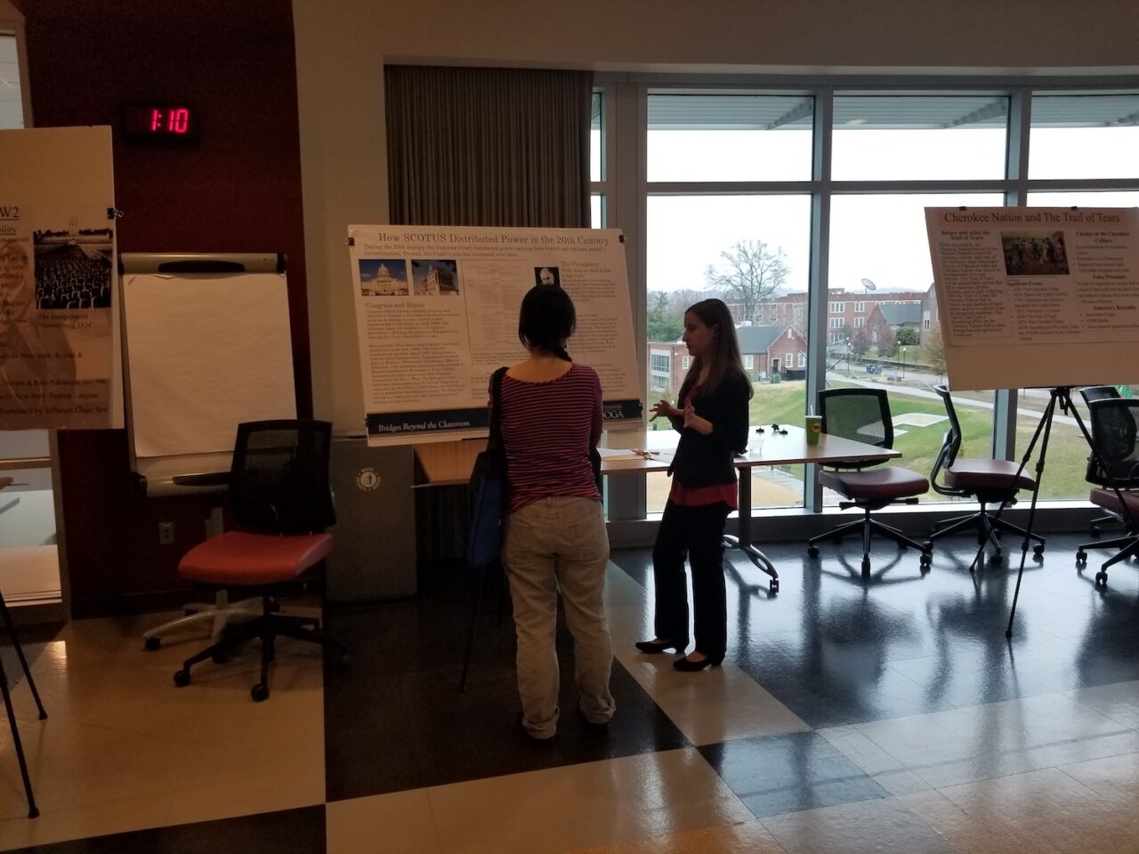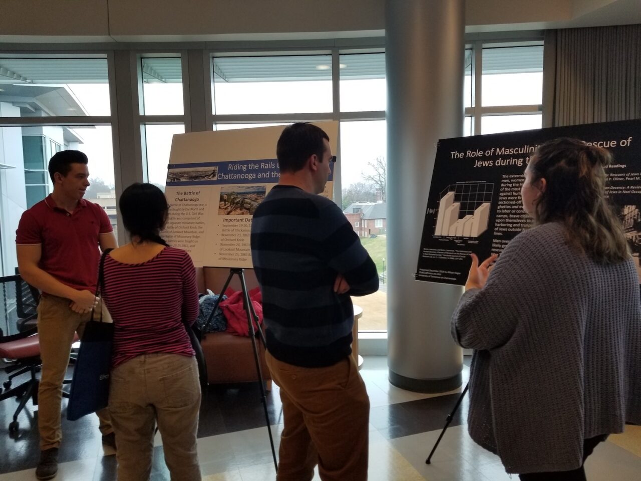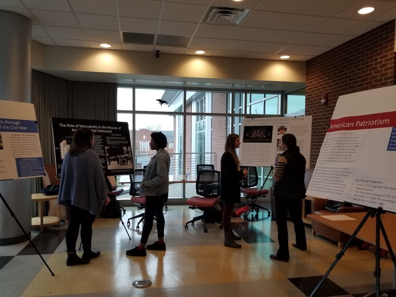 At the end of the Fall 2018 semester, students from sections 0 and 03 of Writing and Research in History showcased the posters they created for the class. The course was designed to help students learn to evaluate primary and secondary materials and use those sources to develop and answer research questions. Students in the class were required to complete a historical research paper on a topic of their choice. In addition, they created posters depicting the major points of their research project. Students then presented these posters during two conference-like sessions, attended by faculty and staff from the Department of History and others.