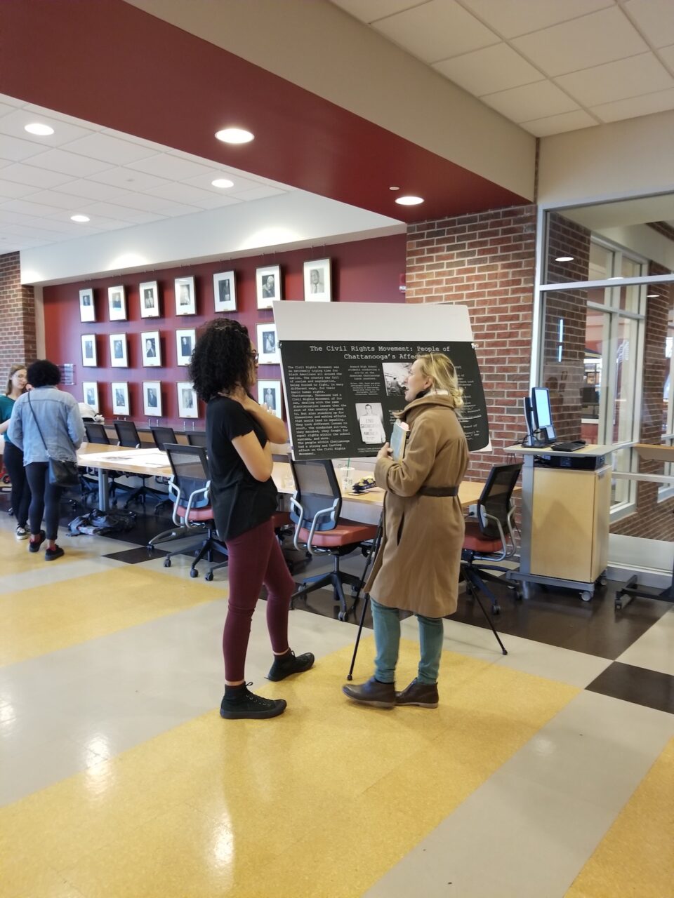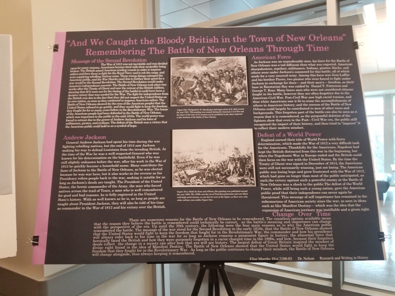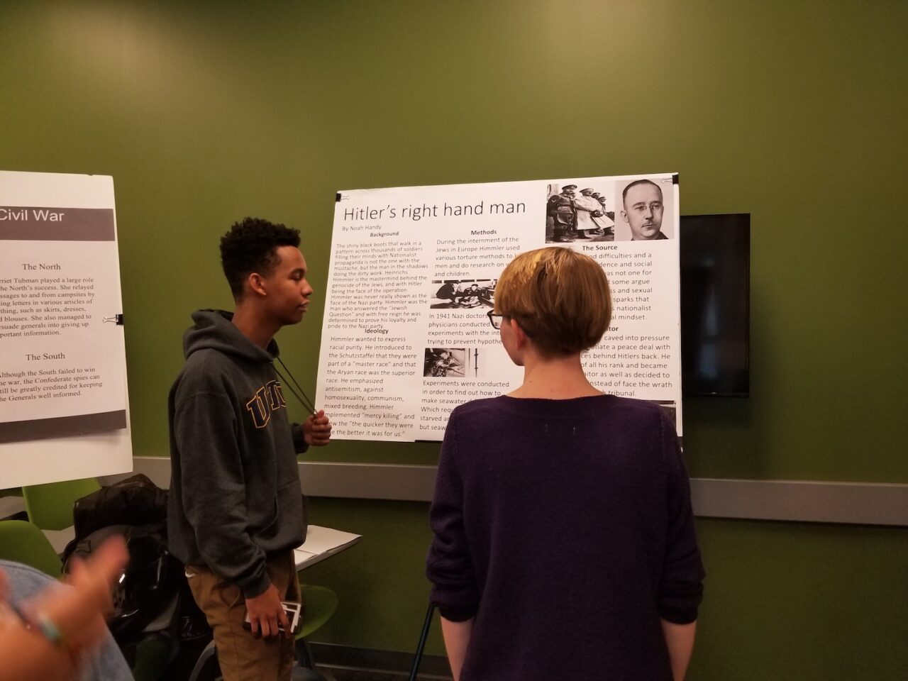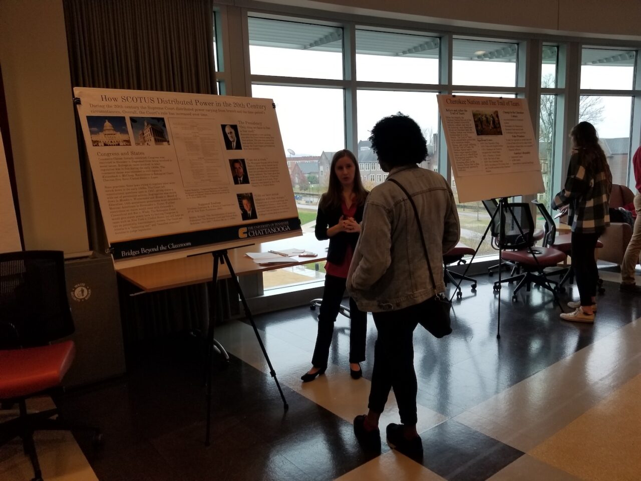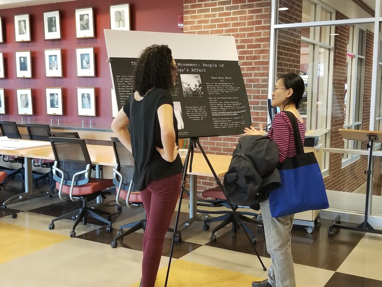 At the end of the Fall 2018 semester, students from sections 0 and 03 of Writing and Research in History showcased the posters they created for the class. The course was designed to help students learn to evaluate primary and secondary materials and use those sources to develop and answer research questions. Students in the class were required to complete a historical research paper on a topic of their choice. In addition, they created posters depicting the major points of their research project. Students then presented these posters during two conference-like sessions, attended by faculty and staff from the Department of History and others.
