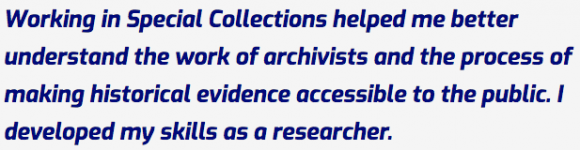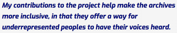 Working in Special Collections helped me better understand the work of archivists and the process of making historical evidence accessible to the public. I developed my skills as a researcher, and I discovered that transcription is a tedious thing that I do not enjoy; I am very thankful for those who do it. My contributions to the project help make the archives more inclusive, in that they offer a way for underrepresented peoples to have their voices heard. This project influences the way historians think about the past, as these interviews provide intimate views of the experience of a minority group. It also preserves the present, for it captures the way the interviewees feel and how their stories shaped them into the people they are today.