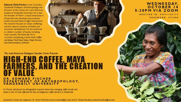 Edward (Ted) Fischer is the Cornelius Vanderbilt Professor of Anthropology and Director of the Center for Latin American Studies at Vanderbilt University. He is also the founder of Maní+, a social enterprise in Guatemala that develops and produces locally sourced foods to fight malnutrition. His research focuses on values, wellbeing, and the cultural contexts of health and economic development. He has authored or edited a number of books, including most recently The Good Life. He is currently completing a book titled Coffee and Values: Third Wave Tastes, Maya Farmers, and Determinations of Worth.