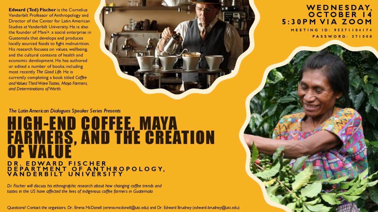 Dr. Ted Fischer (Vanderbilt University, Dept. of Anthropology) gave a great talk about how Mayan and non-Mayan coffee farmers in the Guatemalan highlands are working to create value and take advantage of new consumer trends (especially “third-wave coffee”). Over 50 people attended, and there was a lively Q & A with several questions from UTC students that lasted for about 40 minutes. Overall, it was a great second installment in the speaker series.