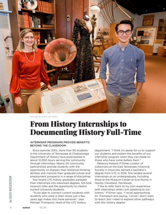 The Fall 2021 issue of Method, the magazine of the UTC College of Arts and Sciences, featured a story on the History Department’s internship program.