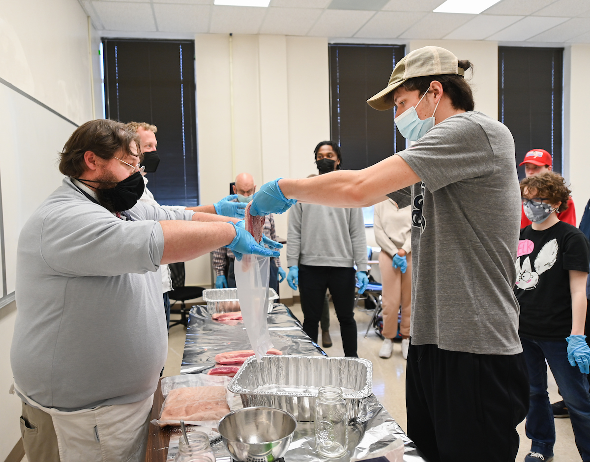 As the students worked in groups to season the different sections, Scott used the vacuum sealer to start the curing process.