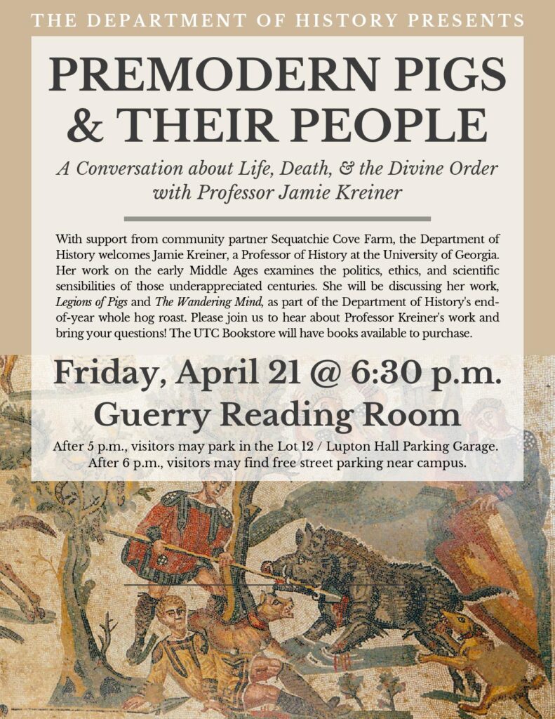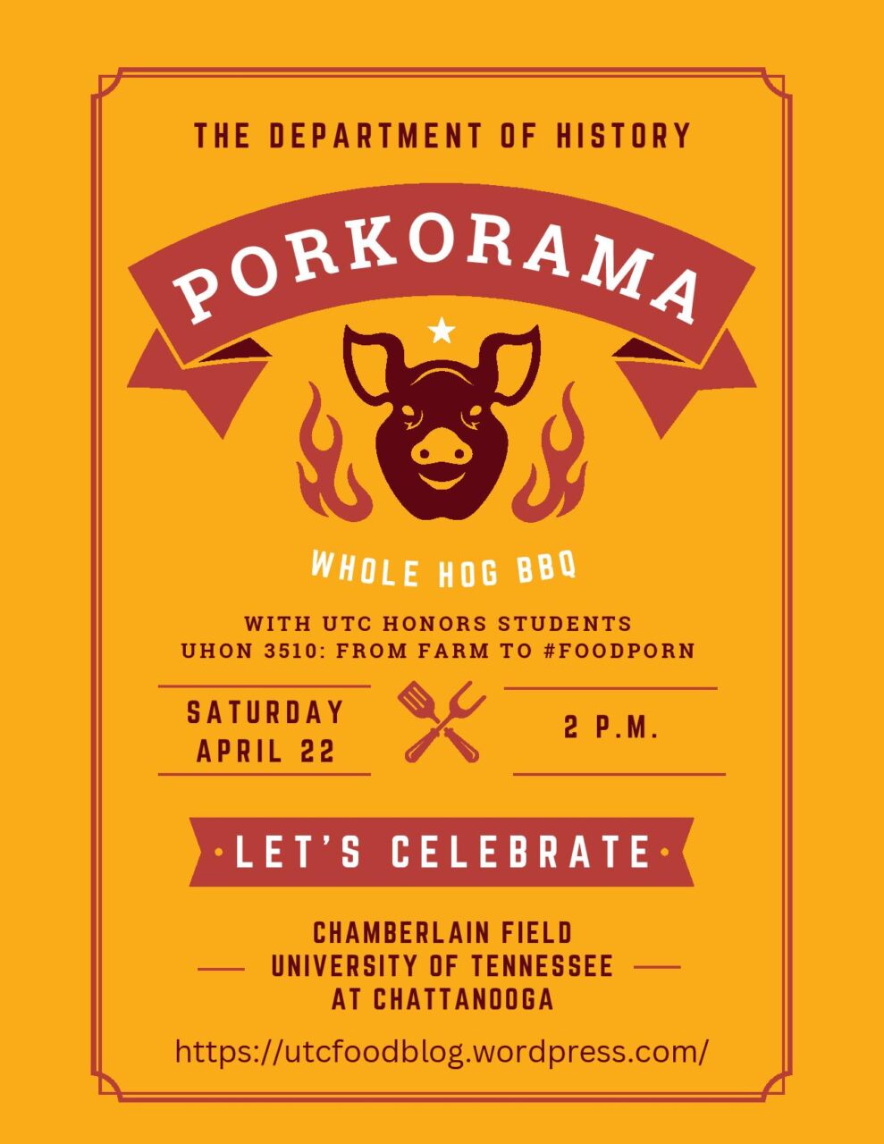 Annie Tracy SamuelApril 19, 2023 Mark your calendars! https://www.utc.edu/sites/default/files/2023-04/2023-4-21-pigs.pdf https://www.utc.edu/sites/default/files/2023-04/2023-4-22-Porkorama-1.pdf