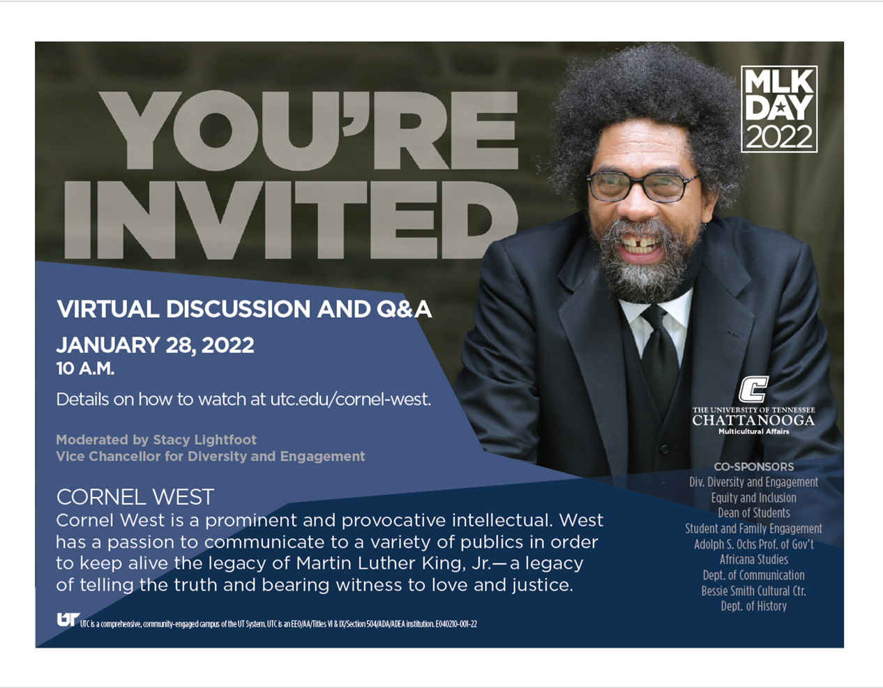 Event with Cornel West on January 28.