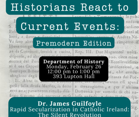 The Department of History invites you to attend our Historians React to Current Events panel on Monday, February 26 at noon.