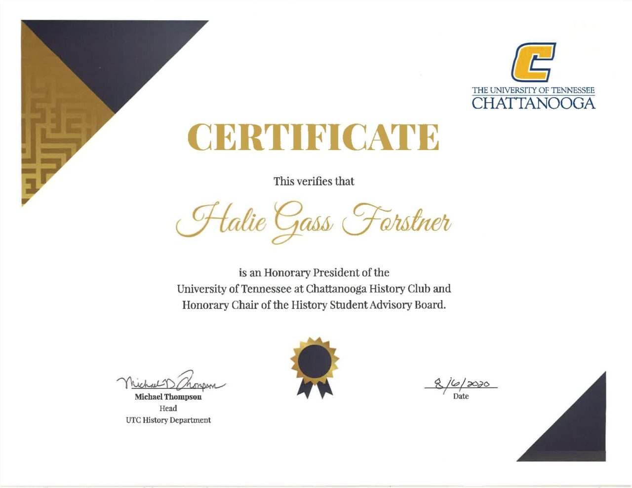 109-year-old Halie Forstner becomes an honorary Moc, honorary president of the UTC History Club, and Honorary Chair of the History Student Advisory Board.