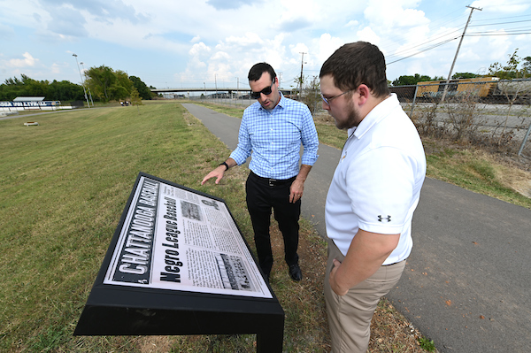 Plaques documenting the history of Engel Stadium and baseball in Chattanooga were unveiled on September 9 at UTC’s Intramural Sports Complex next to the historic stadium. The plaques were part of a project carried out by UTC students under the direction of history department head Michael Thompson and follow the fascinating history of the stadium, Chattanooga baseball, and their connection to nearby neighborhoods and the city.