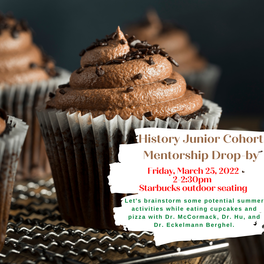 Junior Cohort Mentorship Meeting, March 25, 2022. Cupcakes and Pizzas to Brainstorm Summer Plans!