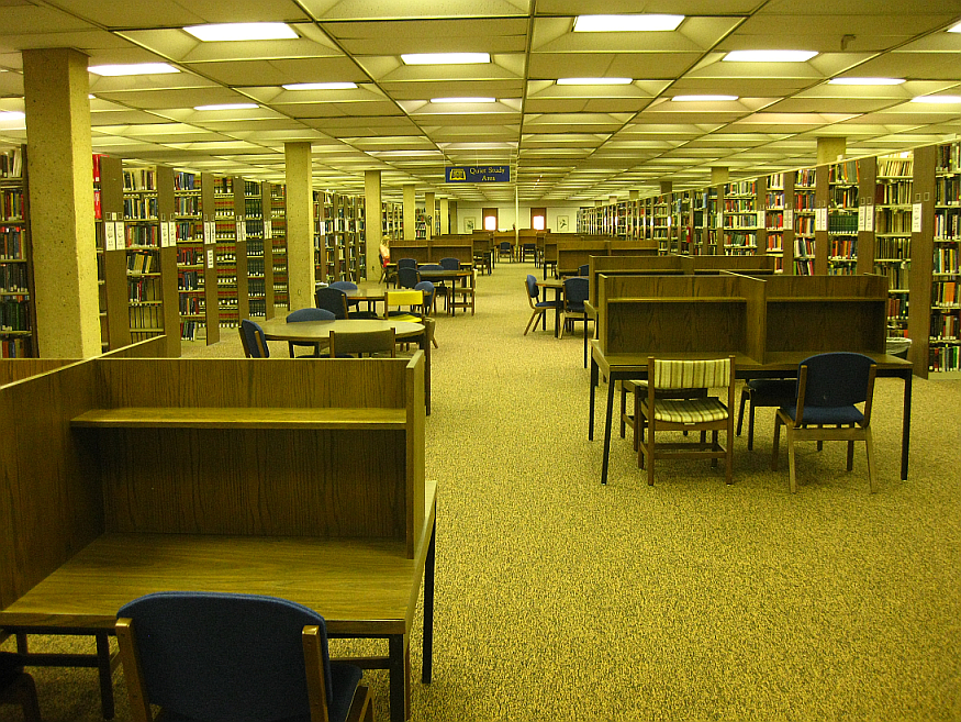 Admittedly, one of the indirectly cool things about working in a library is being here when it’s empty. Not because librarians flip the space into an ultra-exclusive nightclub, play large scale games of hide-and-seek, or have book fights. No, we would never do that (well … maybe the hide-and-seek). Also, it’s not because I want to have the place to myself. That’s boring and I love the buzz and hum of a busy library. Instead, it’s because the library — our big, quasi-Brutalist concrete home that welcomes hundreds of people for 16 hours a day — sits empty and serene as though it’s resting.