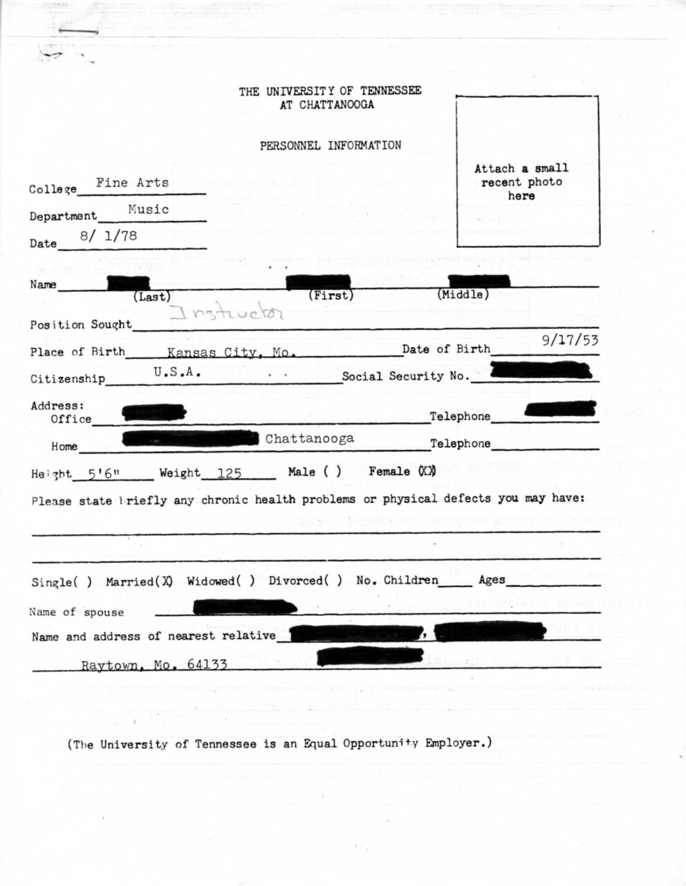 An enormous amount of these job applicant files (without the redactions we have made so that you can see an example) have turned up in some materials deposited with us and all of them are being destroyed. Why? Steve explains: “Archives normally keep records of continuing value and information, but occasionally items end up here that are not necessary to retain. Since these sometimes contain information considered “sensitive” today (social security numbers, for instance) we take careful measures to ensure they are destroyed.”