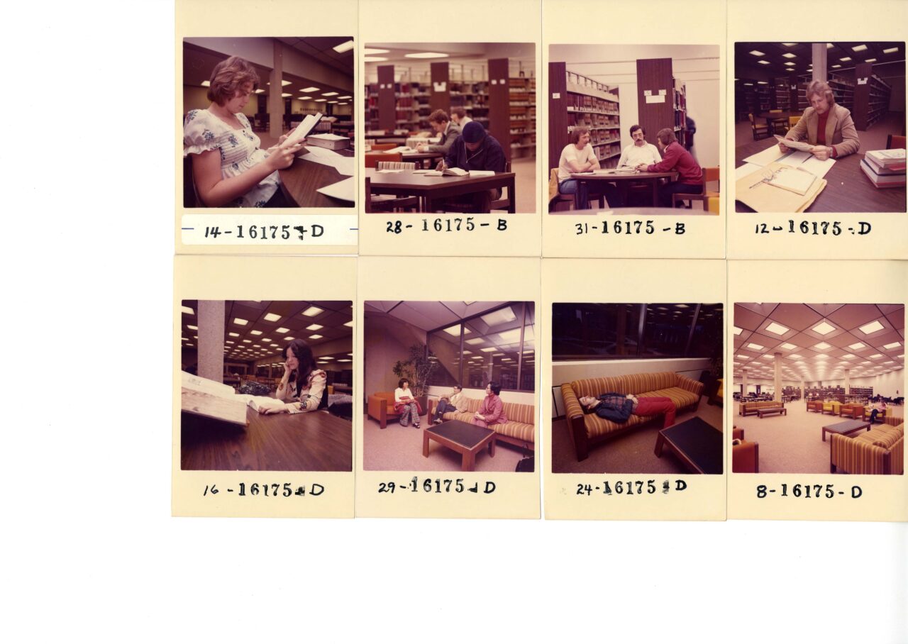 Studying at the Lup-1970’s style! Except for the male Farrah Fawcett hair and advent of computers, ain’t a whole lot changed. Hey, there’s that couch you love to nap on from the third floor! Look-the very same chairs and tables you’ve got your feet propped up on right now (albeit a tad grungier). Enjoy it now, because we are only a short year or so away from all new digs (and all new furniture)!