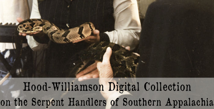 It’s been a long time coming, but we are very excited to announce the launch of our newest digital collection, The Hood-Williamson Digital Collection on Serpent Handlers of Southern Appalachia. The Hood-Williamson archives, held in the Special Collections of the library, is a very important and unique collection of primary source videos documenting the serpent handling churches of Southern Appalachia. The videos see quite a bit of in-house use from researchers and we field many requests from researchers all over the world who are interested in the collection. Until this point however, we have been unable to offer any remote viewing options to the global audience for this collection.
