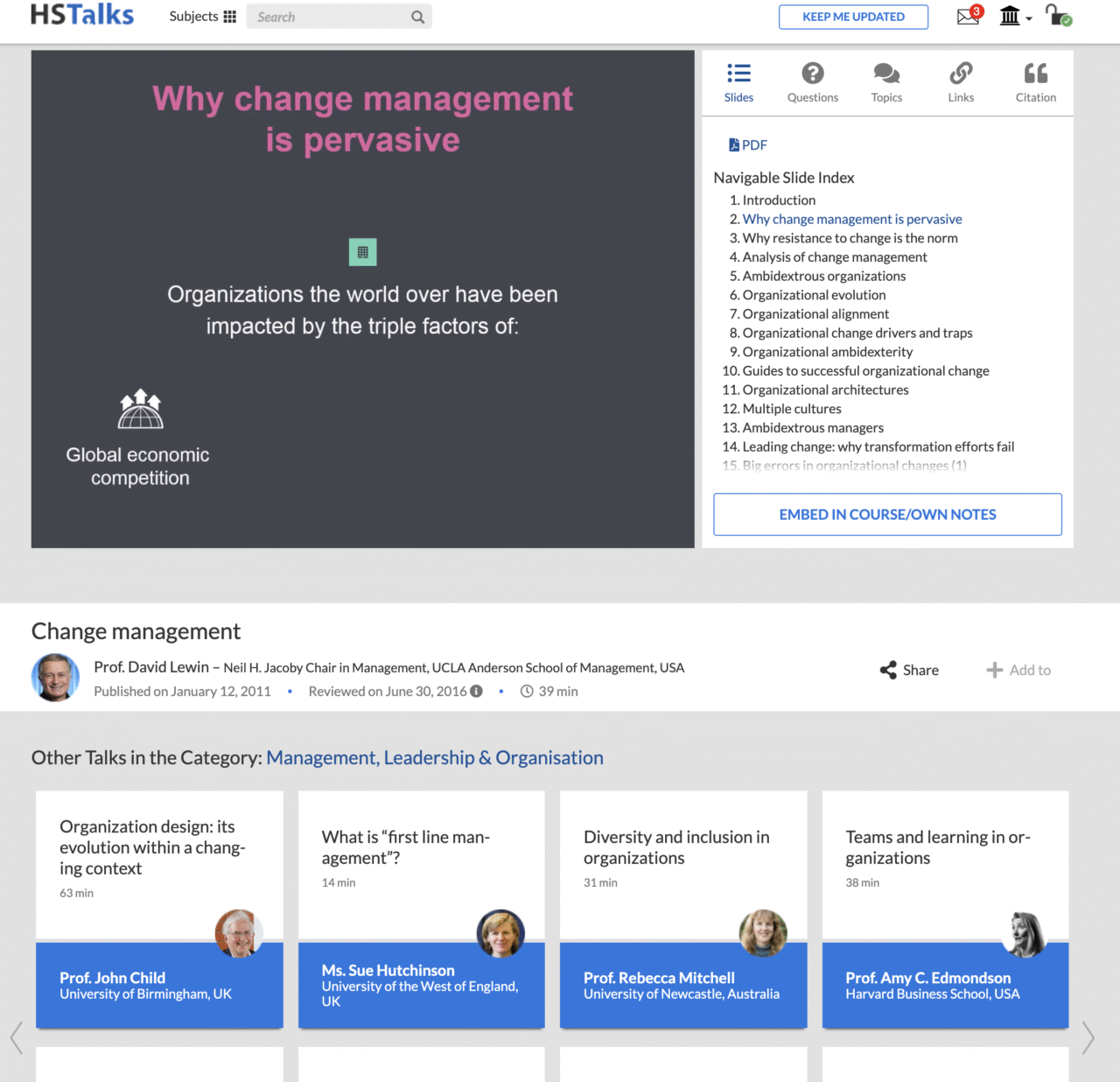 Thanks to the Rollins College of Business, UTC has access to HS Talks video lectures and case studies on Business and Management …