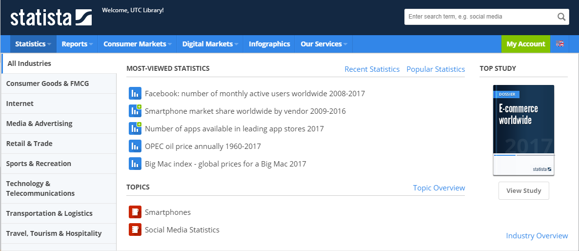 The UTC Library is happy to announce a new subscription to Statista, one of the leading providers of quantitative data and …