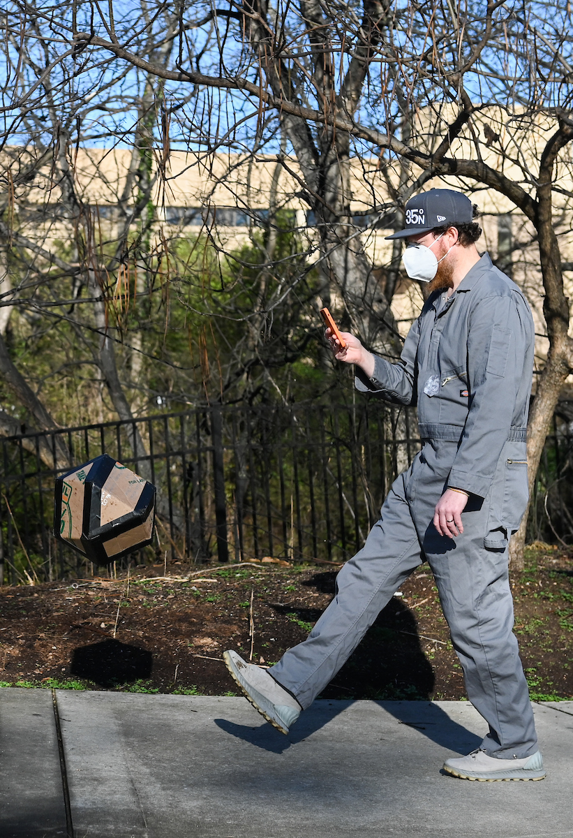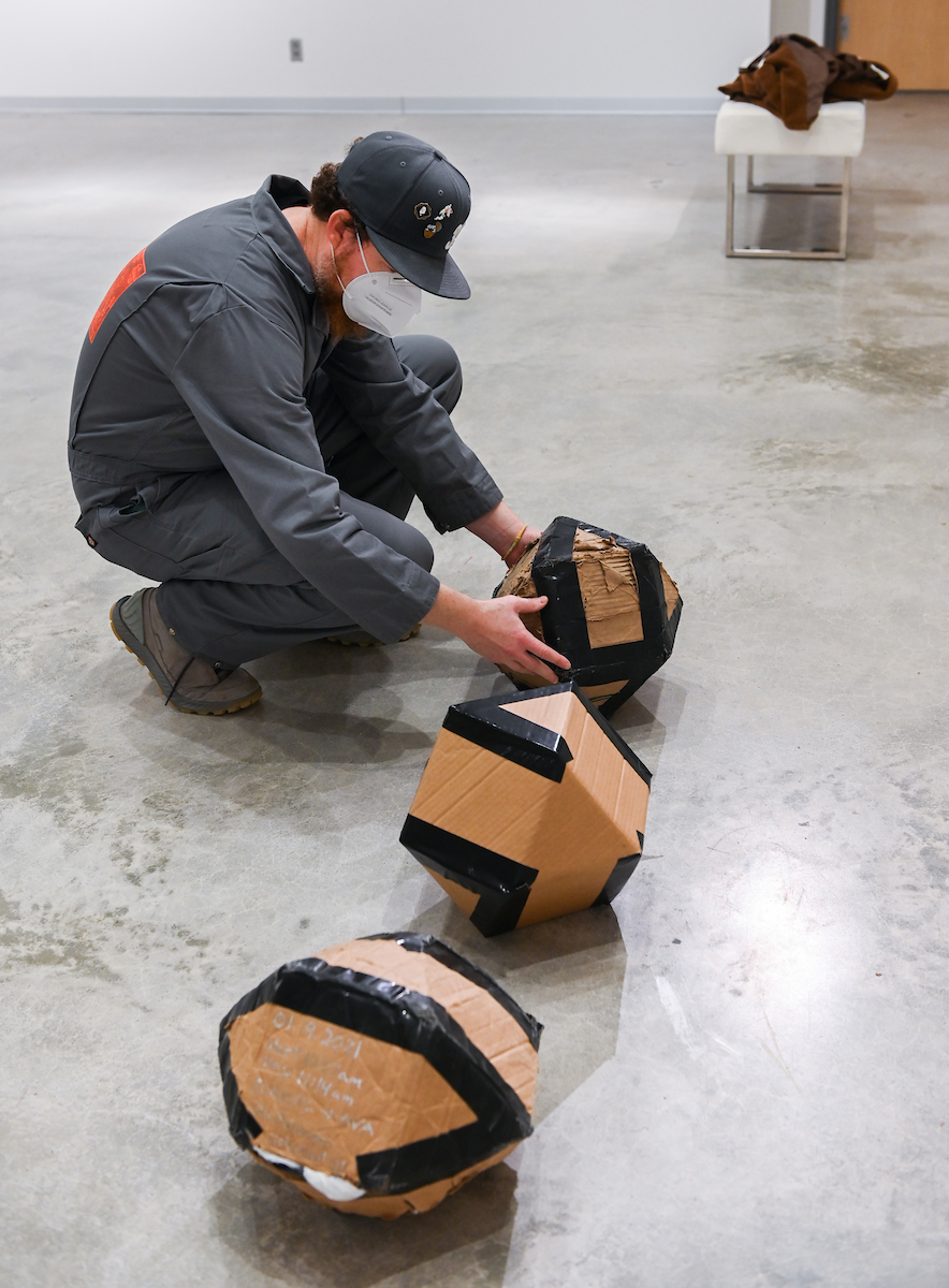 In the exhibit, one of the artists, Marc Boyson, will travel along city streets on “kickabouts.” He will be leaving from the UTC Fine Arts Center at 10 a.m. each Tuesday and Thursday and will kick a cuboctahedron—a 14-sided sculpture—around the city. When he returns to the Cress Gallery, he will leave the sculpture to become part of the exhibition.
