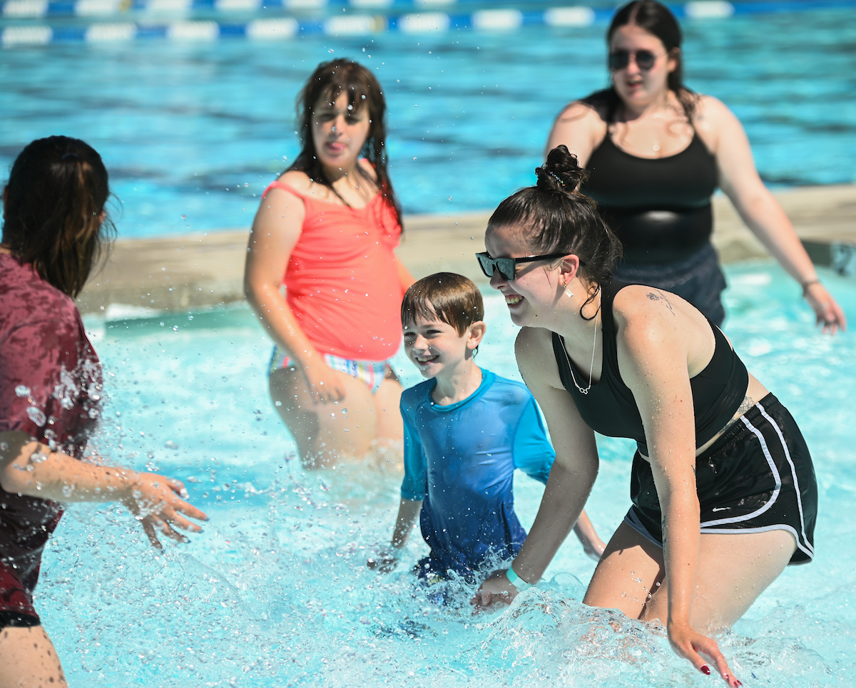 Conversations can be heard this way and that as campers romp in the Warner Park Pool. Some play water basketball. Some, like Sean, just fling themselves around and splash. Some aren’t sure they want to get in at all.