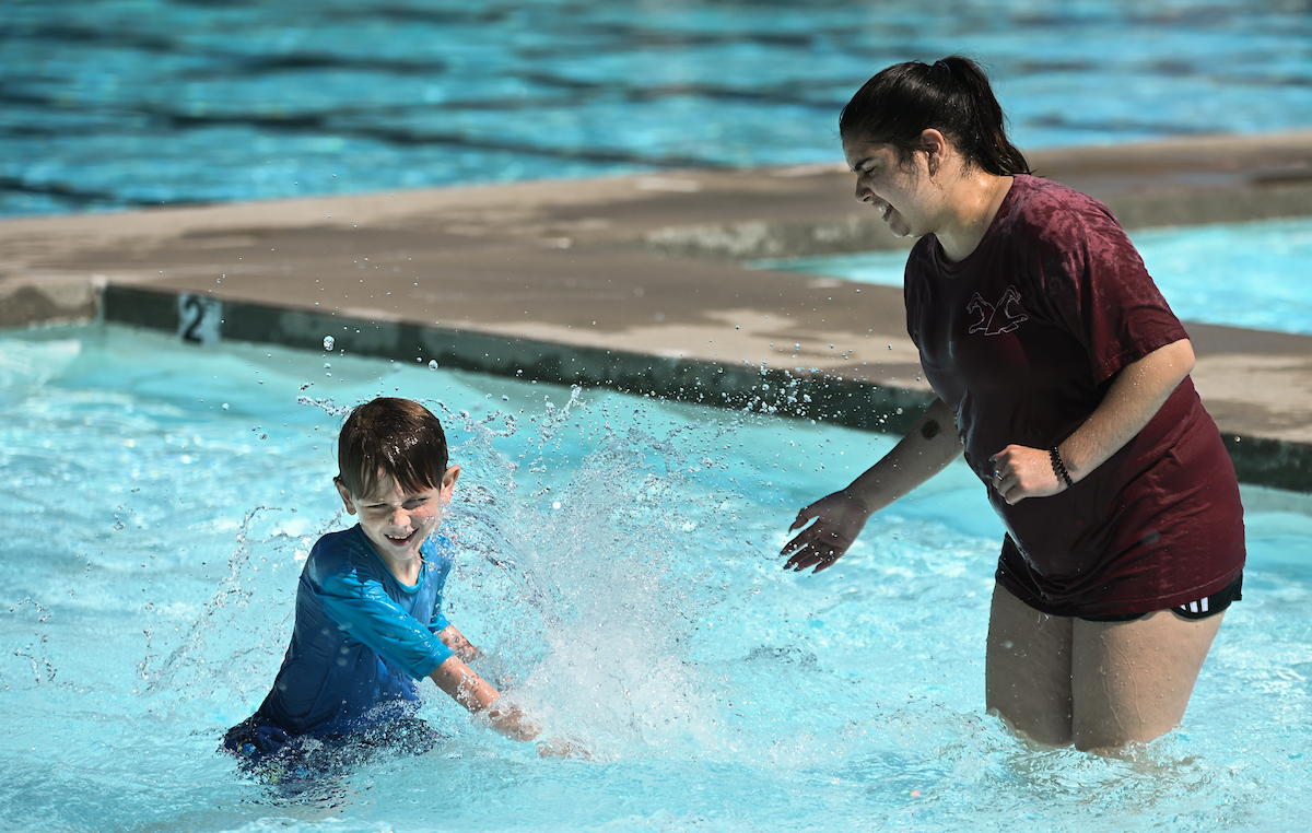 Sean is throwing himself forward in the Warner Park pool, flopping onto his stomach with big splashes. He does it over and over. Around and around the pool.