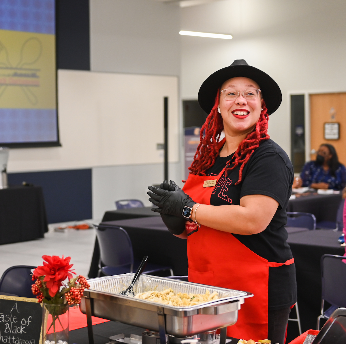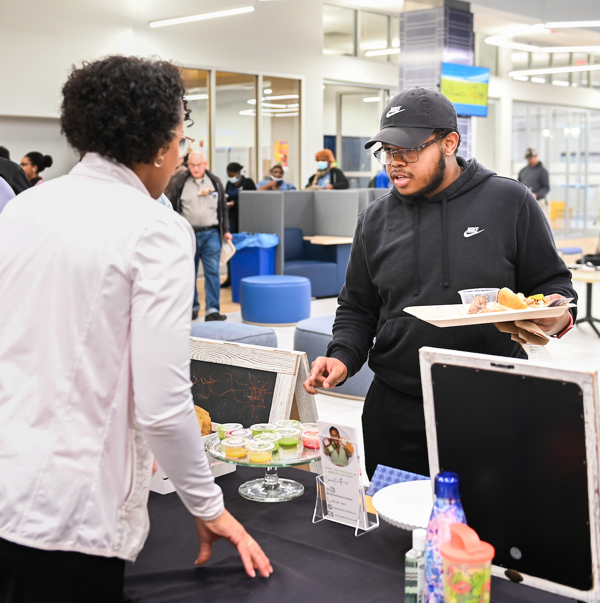 Black vendors from around Chattanooga brought their food to Lupton Hall at the University of Tennessee at Chattanooga on Thursday, Feb. 24, to take part of “Taste of Black Chattanooga.” Hosted by Student Success Programs, the Division of Diversity and Engagement and Africana Studies, it was part of Black History Month events on campus. “We love that we’re not only highlighting these vendors that have committed to coming to campus, but we’re also highlighting restaurants that are right around the corner from campus that students can walk to,” said Crystal Edenfield, director of Student Success Programs at UTC.