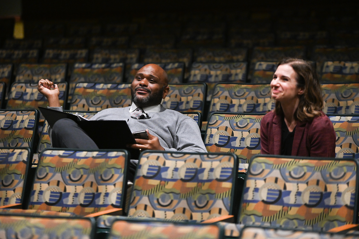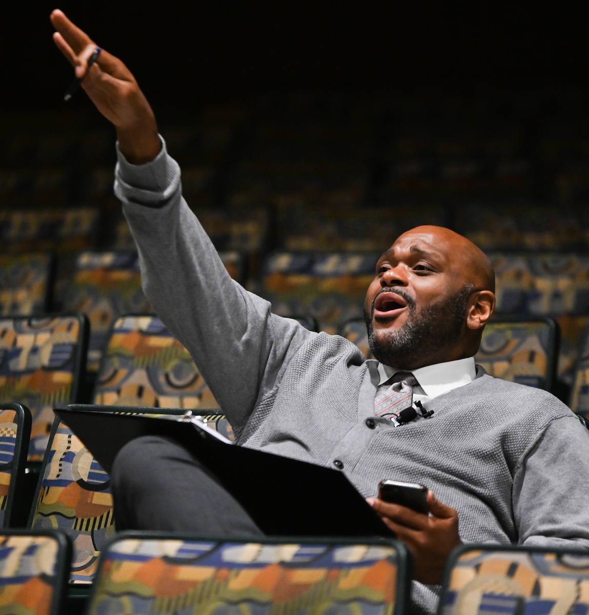 Ruben Studdard works with the Singing Mocs in the University Center Auditorium.