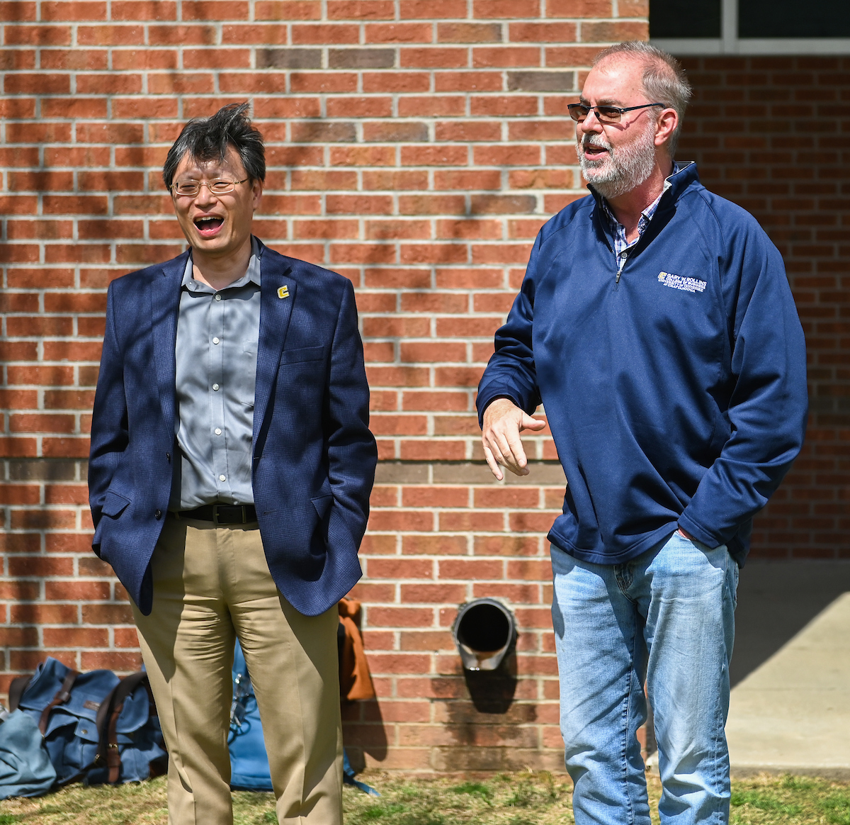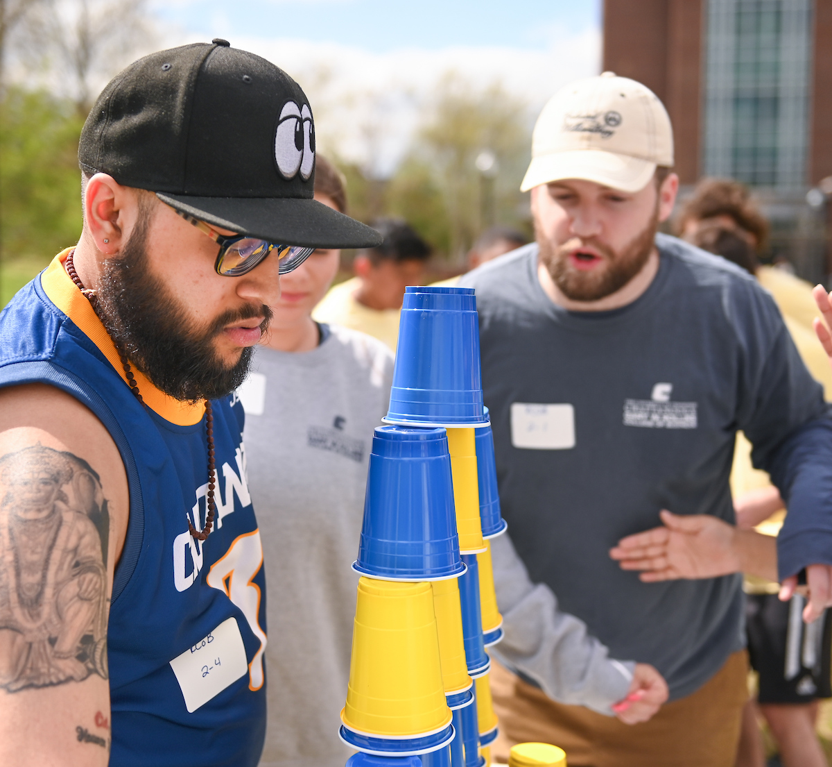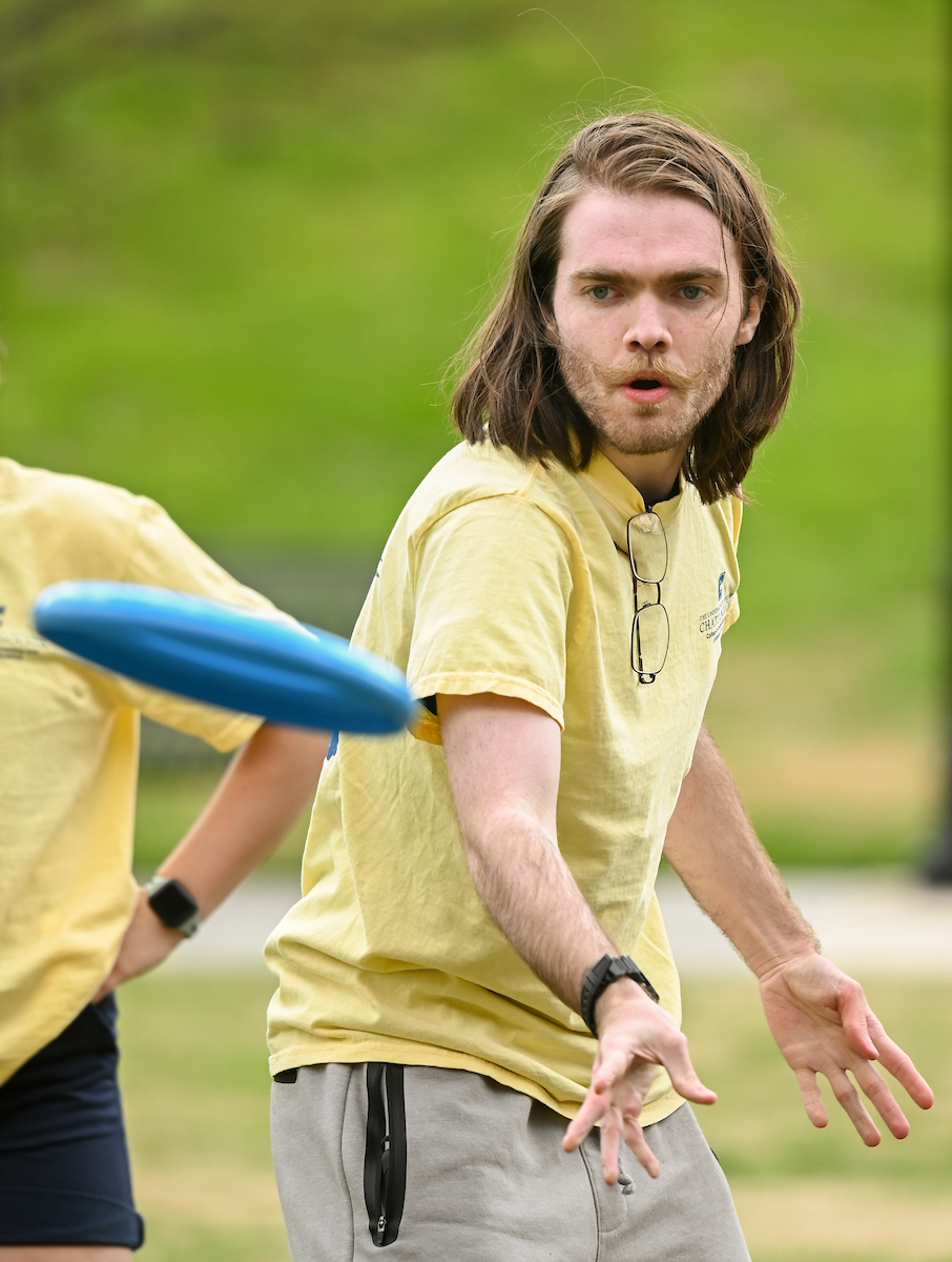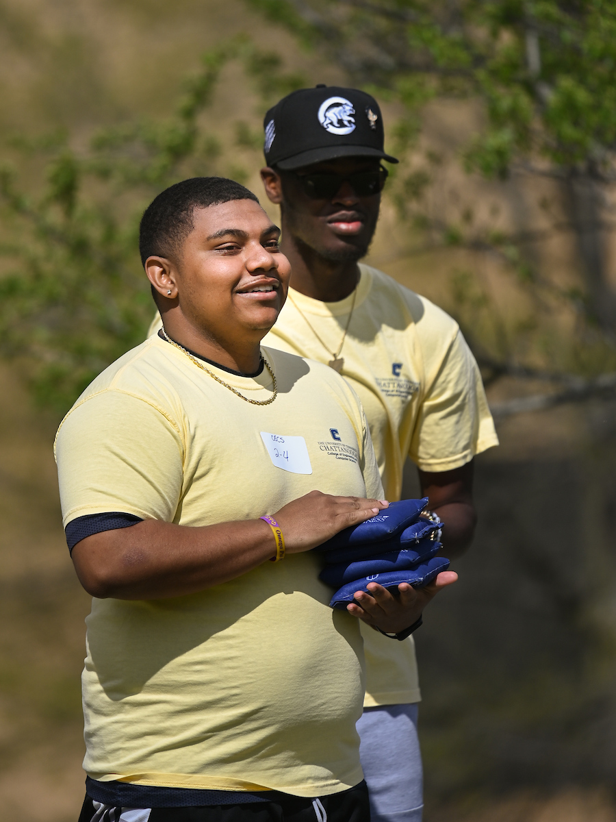 Teams from the Colleges of Business and Engineering faced off Thursday on Chamberlain Field for the first Field Games. The “heated” competition included egg and three-legged races, cup stacking, cornhole, tug of war and lots of laughing. The College of Business was the ultimate champ. In the photos below, Business is in the blue shirts and Engineering in the yellow.