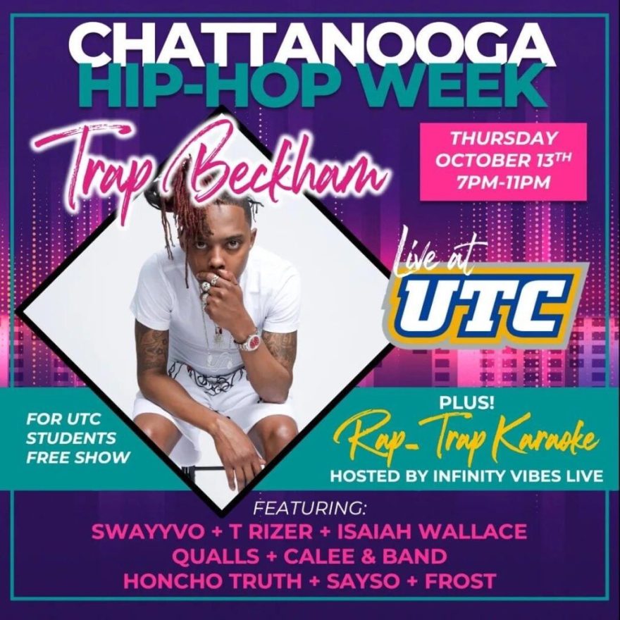 The draw of the city, especially its cultural history, is one of the reasons Chapman created the Chattanooga Hip-Hop Week, a series of events from Oct. 9-15 that includes a concert scheduled Oct. 13 in the Roland Hayes Concert Hall at the UTC Fine Arts Center. Artists slated to perform include Trap Beckham, Swayyvo, T Rizer, Isaiah Wallace, Qualls, Calle & Band, Honcho Truth, Sayso and Frost.