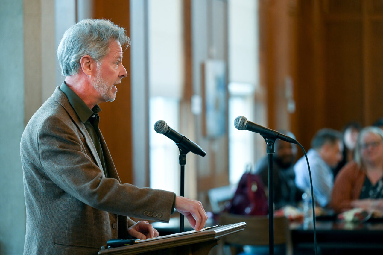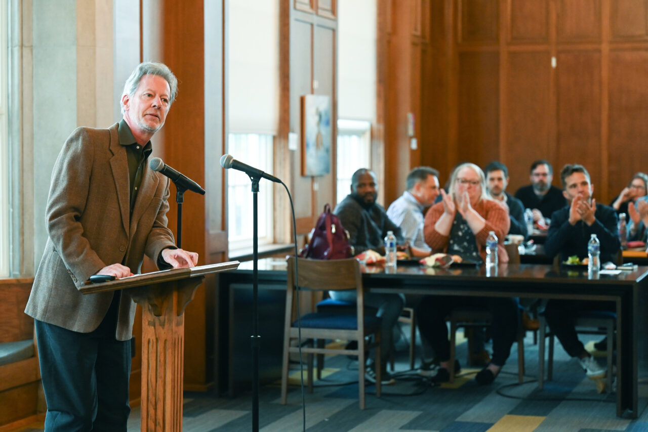 Before a packed audience in the Guerry Center Reading Room on Feb. 24, the inaugural O’Dea Lecture in the Humanities series sponsored by the UTC Honors College kicked off. UC Foundation Professor of English Gregory O’Dea gave his talk titled “Humanities in the Wild: Reintroducing a Vital Species of Thought.”
